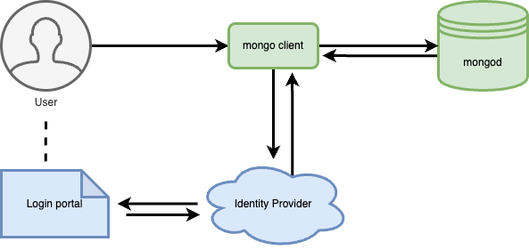 or Compass) opens a browser and redirects a user to the login portal of an external identity provider to pass authentication. This is the most common and secure flow for interactive user sessions. It is suitable for use cases when users have a web browser available on the machine where they are running themongo